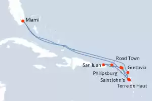 Itinerario : Miami, Saint John's, Gustavia, Saint John's, Road Town, Basse-Terre (Guadalupe), San Juan, Philipsburg, Terre de Haut, Grenada, Castries, Puerto Plata, Miami