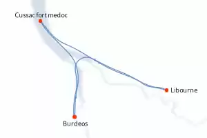 Itinerario : Burdeos, Cussac fort medoc, Blaye, Libourne, Bourg, Burdeos