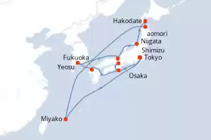 Itinerario : Tokyo, Shimizu, Osaka, Kochi, Fukuoka, Yeosu, Maizuru, Niigata, Hakodate, aomori, Miyako, Tokyo