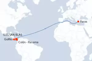 Itinerario : Colón - Panama, ILES SAN BLAS, Portobelo, Playa Muerto, Golfito, Paros