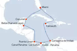 Itinerario : Miami, Falmouth, Cartagena de Indias, Colón - Panama, Canal Panama - Lac Gatun, Puerto Limon, Belize (harvest caye), Cozumel, Miami