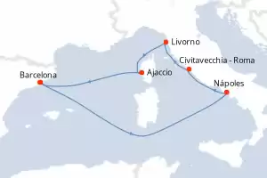 Itinerario : Barcelona, Nápoles, Civitavecchia - Roma, Livorno, Ajaccio, Barcelona
